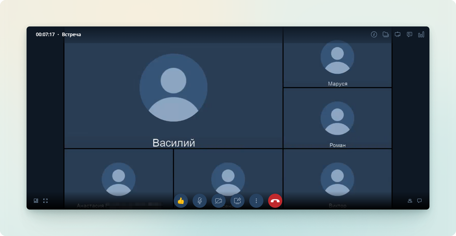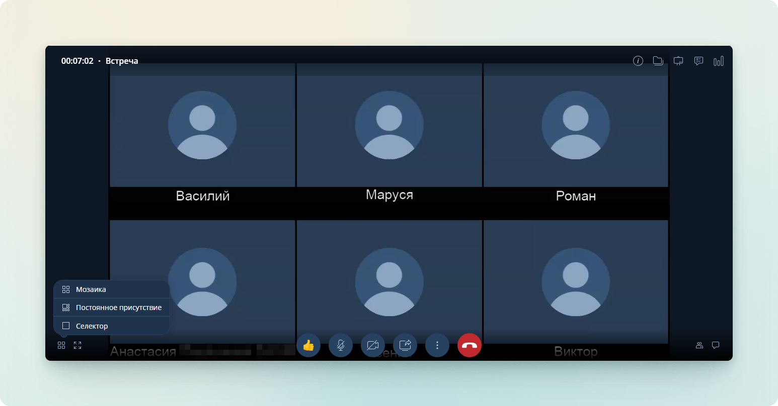 A video layout type is a way of displaying participants of a video conference on the screen. It determines how the video streams of all participants or only the active speaker will be shown. Choosing the appropriate layout type depends on the format of the event and its goals.