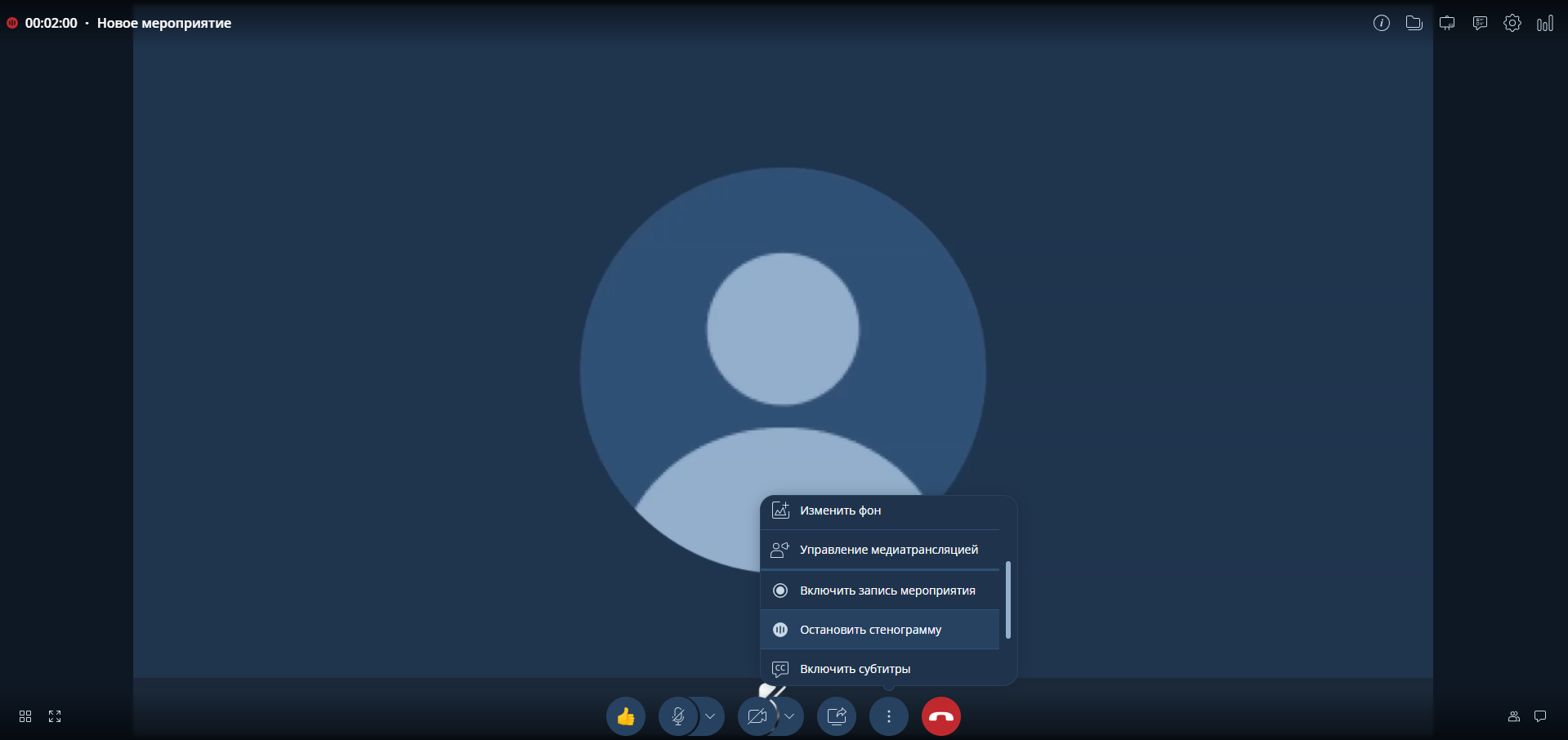 СПОСОБ 2: Ручное отключение стенографирования мероприятия.
